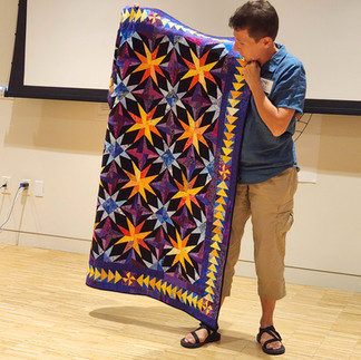 The August meeting of the Corvallis Modern Quilt Guild (CMQG) was conducted at the Corvallis Museum. Colleen, President, convened the meeting at 7:00 p.m. Sharon, substituting as the Membership Chair, welcomed the membership, three new members, and two visitors to the evening meeting. The guild process that members should follow to indicate preferences for photos to be shared on social media was explained to the audience. A red dot placed on your name badge will indicate that no picture should be used.
