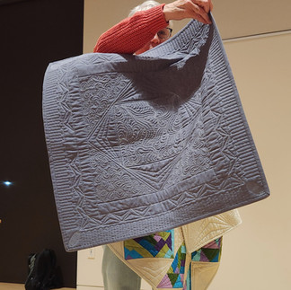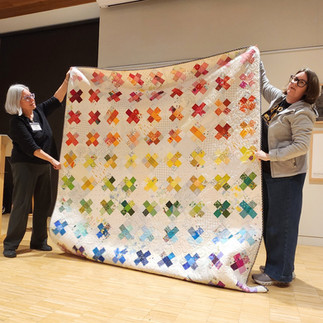 Our QuiltCon community quilt “Porcelain Radiance” was on display during the meeting so members could view it up close.