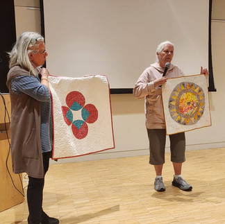 Colleen showed photos from the Sisters Outdoor Quilt Show. 2025 is the 50th anniversary of the show and there will be special exhibits for the occasion. Consequently, there won’t be space for our guild to exhibit but we anticipate being there in 2026.